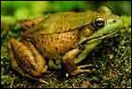 - Pickerel Frog (Rana palustris) has dark brown spots in two rows along the back As one of the few poisonous frogs found in the US, they produce toxic skin secretions that are irritating to humans, so do not eat them. Many frog-eating snakes avoid these frogs for this reason. Listed as stable on the Endangered Species list, but declining.