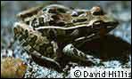 - Southern Leopard Frog (Rana sphenocephala) are slender with long legs and sharply pointed heads. One can find them along ponds and streams especially after a heavy rain. They are important in the food chain to Great Blue Herons and water snakes. Oh, and due to their large rear legs, humans find them delightful, as well. Listed as Least Concern on the Endangered Species list.