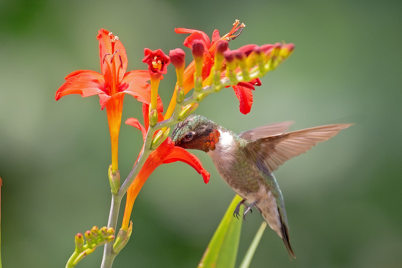 If you’re interested in drawing pollinating birds to your garden, choose flowers with characteristics that appeal to them: tubular shapes with petals that curve back; bright colors, especially red for hummingbirds; a place to perch; and, odorless. The flowers that birds come to for feeding are open during the day.